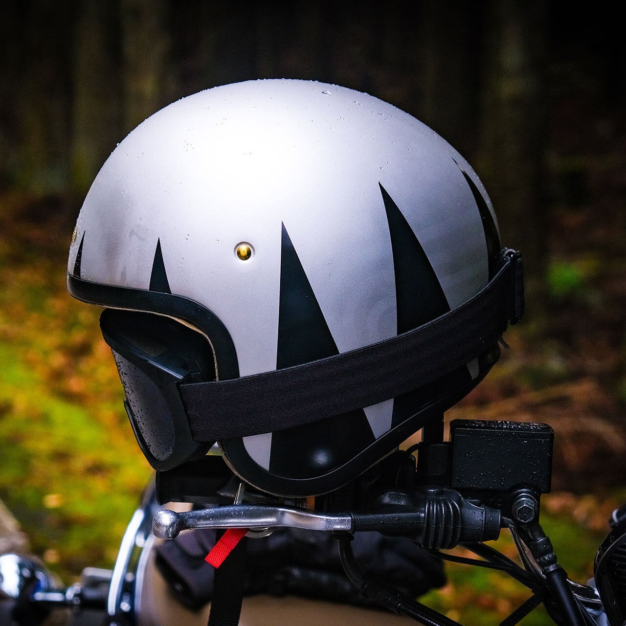 長めの三角がヘルメットを一周するシンプルなデザインです。